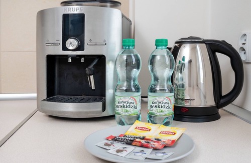Łagiewnicka Urban Studio consists of a living room with a double bed and an additional sofa, a kitchen, and a bathroom. The apartment is equipped with high-speed Wi-Fi, cable TV, a washing machine, a fridge with a freezer, a dishwasher, a gas stove, a microwave, a kettle, and a coffee machine. Guests also have access to an iron, a vacuum cleaner, and a hairdryer. On-site parking is available, although a free spot cannot be guaranteed.