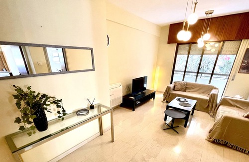 Luxury one-bedroom apartment on the first floor in a quiet residential area in Acropolis next to KPMG, with free and dedicated parking with a spacious living area and all amenities.