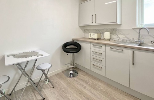 Station Suite 2 (UK40739) is a first-floor studio apartment, which has been tastefully furnished, is in the centre of Tidworth. This open plan apartment offers a well-equipped kitchen area, shower room, as well as a cosy living/bedroom area with a super kingsize bed and Smart TV. A table and chairs within in the apartment can be moved for dining. Outside is a shared balcony with outdoor seating. Both properties are have a shared balcony and are located on Tidworth High Street above a commercial premises. They are perfect for those visiting Tidworth or wanting to explore surrounding areas such as Salisbury, Marlborough and Andover.