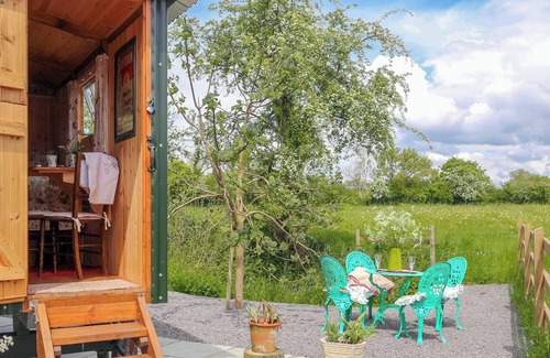 Nestled in a cosy corner on a traditional Glastonbury farm, this charming little shepherd’s hut offers a calming and relaxing place to stay for a romantic couple or solo adventurer.. 5 steps to entrance.
