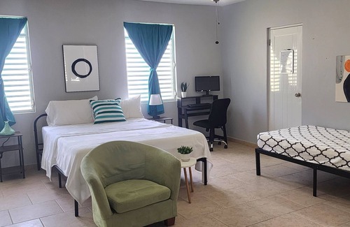 Large residence 18 min. from the airport and four minutes from the beach. With living area, laundry and private parking. It has 3 rooms with air conditioning, 3 bathrooms and a sleeping area that shares the air of the master: 2 queen beds and 5 twin beds. The private living area has hammocks, fire pit, swimming pool and outdoor dining area. It is fully accessible from the main road and from here you will have easy access to the best beaches and restaurants in the area.