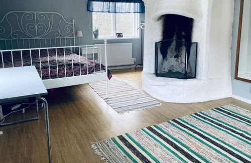 Welcome to the beautiful village of Tolg. Here you live in a manor building from the middle of the 19th century and is suitable for those who want to get away from the big city and just feel the peace of the countryside. Around the corner you have sheep, alpacas, pigs and cows. The accommodation is perfect for the large family or two families as a total of 11 beds are offered. There are many famous excursion destinations nearby. Take the opportunity to visit Hörnebo slate mine, Varabokvarn, Ramoa adventure village and Nykulla lookout tower. For the active, one of the fine hiking trails Värendsleden and Sigfridsleden is recommended. Here you can enjoy a walk or get there at full speed on a mountain bike. For all guests who want to swim, there are several cozy lakes to visit. The lakes are just a stone's throw from the farm and there you can enjoy the tranquility of a sandy beach or jump from the high cliffs. The rent also includes a canoe, so take the opportunity to take a pleasant paddle trip. But don't forget your fishing rod, because here there are fish of various species. The house is continuously renovated. The kitchen is renovated in 50's style and equipped with gas stove, wood stove and dishwasher. Here you will also find the homeowner's own cookbook "Seven seasons in Maja's kitchen". If you don't want to cook yourself, the village's restaurant and cafe "Krogen på logen" is just a stone's throw away. The toilet is newly renovated with a washing machine and shower. On the lower level there is also a living room with a sofa and TV, a dining room with an office and a large dining table for the larger group. There is also a bedroom with a double bed. There are fireplaces and fireplaces in almost every room and wood is included for both pleasant warmth and cozy moments in front of the fire. On the upper level there are three rooms. Even these with a fireplace or a stove. In the first room there is a double bed, sofa bed and desk. In the second room there is a simple bed and desk. The third room is the largest of the bedrooms. There is a double bed as well as a corner sofa and table. For guests who bring their pets with them, part of the garden is fenced. The garden is lush and suitable for cozy barbecue evenings or an invigorating morning sun. Getting around: Car is preferred to get to the village. Bikes for loan can be arranged. There is also a bus stop approx. 1 km from the house.