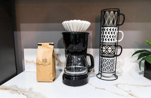 Prepare delicious meals in our fully equipped kitchen, complete with a coffee maker for your morning brew, a Brita water filter for clean drinking water, and a microwave for quick meals. All the pots, pans, and dishes you need are provided, and cleanup is a breeze with the dishwasher.