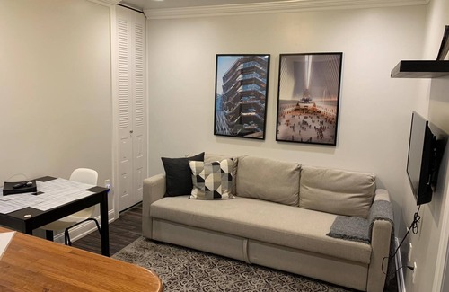 Astounding 1bed Apt, excellent location to Commute to NYC. Bus stop is steps away. This apartment was recently renovated and professionally decorated to make your stay pleasant and in style. Bedroom has a queen bed, full of closet space, at the living room there is a full sofa bed. TV, wifi, a complete equipped kitchen. Elevator and laundry room in a common area. We also offer private parking for a daily fee.
