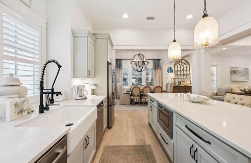 DETAILS: Nestled in the heart of the exclusive WaterSound West community, 17 Blue Moon Lane is a coastal retreat that perfectly blends luxury and tranquility. This stunning 4-bedroom, 4.5-bathroom home spans an impressive 3,255 square feet, offering ample space for up to 8 guests. Only a short 3-minute stroll along the charming boardwalk leads to pristine Emerald Coast beaches, while the community’s zero-entry pool and shaded arbor provide the ultimate setting for lazy afternoons!