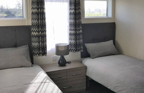 Luxurious modern lodge with a luxury large master double with ensuite bath with overhead shower and one twin with direct access to Jack and Jill bathroom. Spacious open plan living/kitchen area. Utility room with dishwasher and washing machine. Dining area with patio doors leading to outside decking. Mountain views. No pets.. Commanding panoramic views of the Ochil Hills, these stunning woodland lodges take full advantage of their unique location in the glorious Stirling countryside. A wonderful touring base boasting unparalleled access to the very best of central Scotland.