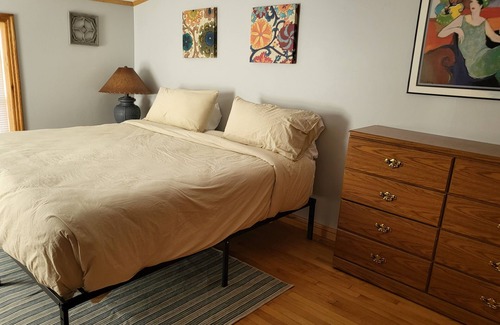 Your home away from home in Manistee with 2 bedrooms. This fabulous ranch apartment features a welcoming living room with a cozy sofa bed, perfect for relaxing after a day of exploring. The bedrooms offer a king and queen bed for a good night's sleep. With AC and heating, guests will stay comfortable year-round. The bathroom includes a refreshing shower. Enjoy your time in Manistee at my comfortable apartment.