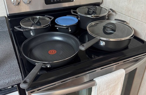 Feel the ultimate amount of comfort in a peaceful home away from home. The living room is equipped with a 65" tv with full access to streaming services and luxurious velvet couches. The 2 bedroom apartments feature 3 beds, 2 queens and a king. The kitchen is stocked with dinnerware, pots and pans, teas, coffees and all main necessities. Washer and dryers are available. Private side entrance. Parking permit is required as there is no parking in the driveway available.