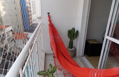 Apartment of 53 m2 fully furnished: living room with 2 environments, 2 bedrooms, balcony with hammock and screen, bathroom, kitchen and service area.