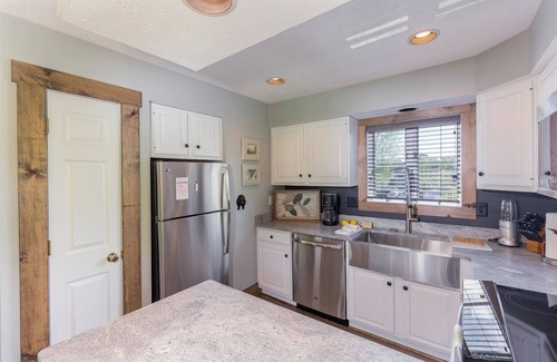 Holly 5 is located in the beautiful Chetola Resort, a gated community rated by Southern Living as "one of the best stays in the Blue Ridge" with a gorgeous lake with swans, walking trails, restaurant with seating in and out, indoor pool, health spa, tennis courts and much more. A one level, upstairs end unit with a large, covered balcony, offering views of the beautiful mountain landscape, this fully renovated unit evokes the rustic mountain atmosphere with its shiplap and reclaimed wood accents; yet with all the modern conveniences of today. Free Wi-Fi, a 48” HD flat-screen TV, gas log fireplace with remote, and all new furnishings as well as a fully stocked kitchen with granite counter-tops and stainless appliances are just a few of the comforts we offer. The bright and open floor-plan lends itself to easy and relaxed living at its best. The master suite has a king bed and spa bath with granite counters, large jetted tub and separate tile shower. The second bedroom has a queen bed and full bath just outside in the hallway. Cool-gel memory foam mattresses and upscale linen will help you get a great night`s sleep and be ready for next day`s adventures. A queen sleeper sofa in the living room accommodates two additional guests.