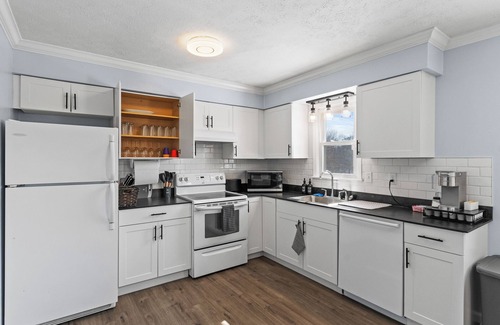 Come unwind after a day at the ark at this updated 3 bed/1 bath ranch. Brand new kitchen, new beds and bedding, full stocked kitchen, and some games for the family to enjoy. Only 2 miles away from The Ark Encounter means you can come home for lunch and nap time if you'd like! Keurig is stocked, large kitchen table for enjoying time together, and a rolling backyard for kids to have some fun in!