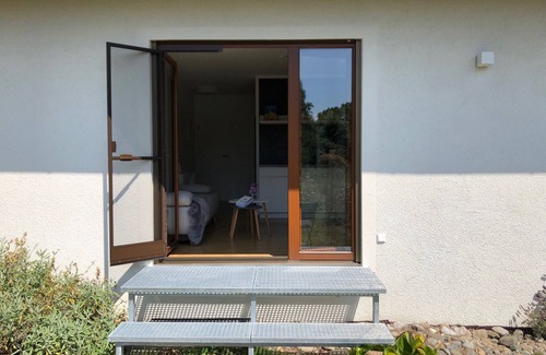 The modern apartment has a seat in its own garden (south side) as well as dimming options and fly screens.