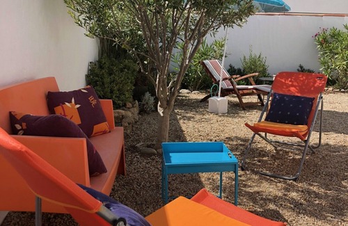 At 150 meters from the beach of Lutins and 10 minutes from the port of Herbaudière. Ground floor apartment with private courtyard of 95 m2 (garden furniture-barbecue ...)
