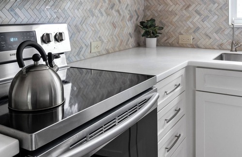 Our modern amenities include Smart TVs in the living room and downstairs bedroom, in-home laundry, dedicated high-speed WiFi, and individual heating/cooling units in the upstairs bedrooms. Additionally, we offer both garage and off-street parking.