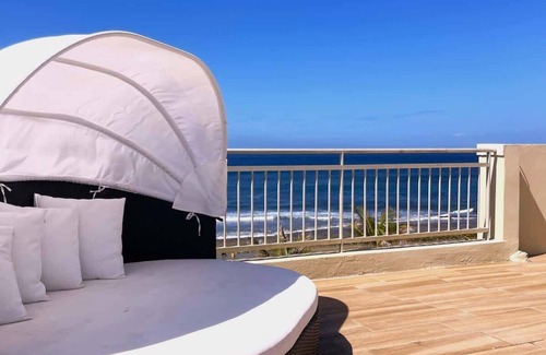 This listing is for our Luxurious Beachfront Penthouse with four bedrooms and three bathrooms in Haudimar Beach Apartments at Jobos Beach, Isabela. This corner unit is a corner unit on the fourth floor is the top of the line apartment in the Complex. It has an unobstructed view of the beach. Enjoy the most amazing Sunsets from the fully furnished Rooftop terrace. The apartment is fully renovated with new bathrooms, a modern kitchen, floors, and furniture.
