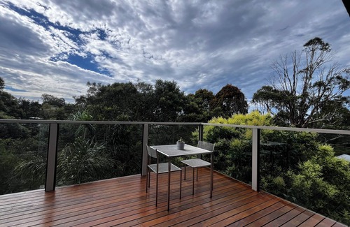 Welcome to the tranquil treetop retreat – a peaceful haven perched in the treetops of old Ocean Grove. Immerse yourself in nature, surrounded by lush canopy views and birdsong. Relax in one of the outdoor areas (there's 3 decks) or curl up inside on one of the ultra-comfy lounges. Just 5 mins drive to beaches & Barwon Heads, & a short walk to the stunning Blue Lake, it’s a serene escape for couples, small groups, & families alike.