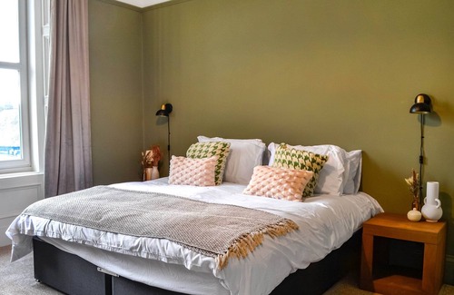 Shower Room: Walk-In Shower, Heated Towel Rail, Toilet. Gas central heating, electricity, bed linen, towels and Wi-Fi included. Welcome pack. On road parking. No smoking. . enchanting Ayrshire Coast. This charming holiday let offers an unparalleled experience in comfort and convenience. Upon entering, guests are greeted by a beautifully decorated interior, boasting spacious rooms with high ceilings and large picture windows that flood the space with natural light.