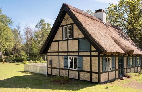 Arrive and step into this cozy half-timbered house. The magic and charm of the house are not only characterized by its construction, furnishings and decorations, but also by its history. The house was originally built in the 1800s, but was moved to this new location in Ellinge Lyng in 1966. The house was rebuilt brick by brick, which was featured in a Danish real estate television program. Enjoy the two floors, which have cozy bedrooms and an open fireplace and wood-burning stove to keep the whole house warm on cooler days. Relax on the sofa, cook in the kitchen and dine at the dining table overlooking the garden.