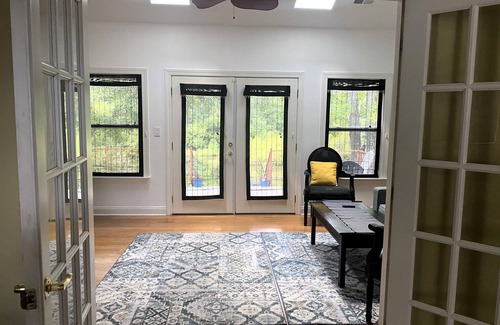 Discover this charming three-bedroom, two-bathroom home and enjoy the perfect blend of comfort and convenience for your next escape. This spacious retreat easily accommodates up to six guests, making it ideal for families or small groups. Step out onto the back porch and take in the peaceful view of the pond, or relax indoors with two 50-inch Smart TVs equipped with Roku. Stay connected with complimentary Wi-Fi and enjoy plenty of private driveway parking.
