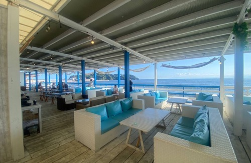 From the second floor window you can see the popular local line Enoshima Electric Line running the Enoshima observation deck and the Ryukoji Temple pagoda and you can enjoy the seaside town life around Enoshima Station the most popular area in Shonan