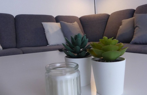 Das Wohnzimmer ist in hellen Farben eingerichtet und ist ausgestattet mit einer Couch, die sich ggf. zur Schlafcouch umwandeln lässt. Außerdem steht ein Flachbild-TV und WLAN zur Verfügung. Mit Gesellschaftsspielen und Büchern kann man die Zeit zusammen mit Familie oder Freunde verbringen. Des Weiteren gibt es vom Wohnzimmer einen Zugang zum Balkon. Dort stehen Balkonmöbel, die man zum Rauchen oder einfach zum Relaxen nutzen kann.