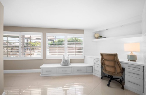 Upscale intracoastal home with premium furnishings, 2 ensuite bedrooms, and a third bedroom near a full bath. Master suite includes a private office; all rooms have office desks.