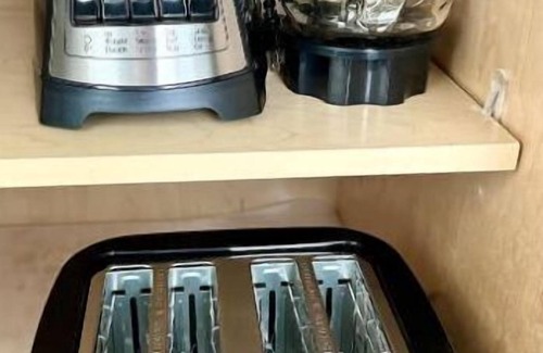 The kitchen is fully stocked with new stainless steel appliances, dishwasher, gas stove, ice maker, toaster, blender, pots, pans, wine glasses, pour over coffee maker and electric tea kettle. Plus tons of cooking utensils. The dining table can seat 8-10 for group dinners or a fun game night.