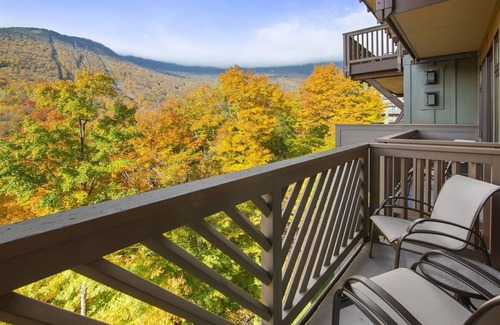 - Private outdoor balcony with panoramic Mount Mansfield views
