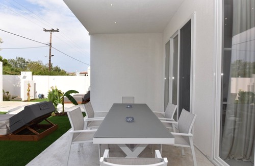 Internally, with the design of the furniture and their layout, great emphasis was placed on ergonomics, privacy protection and contact with the environment outside. Taking advantage of the location of the accommodation we were able to make each suite autonomous. White is the ultimate color for the minimalist interior and exterior design of the suites, with a simple modern accent, with straight clean and at the same time strict lines and "smooth" surfaces. The design of the furniture gives the feeling of elegance and luxury, giving the refined tone of its velvet haute couture fabrics. The minimalistic decoration excludes all unnecessary elements and details that do not contribute to the overall composition, in order to emphasize only the absolutely necessary. It is relaxing , serene,calm and gives a modern and contemporary emphasis to the suites of 4 Elements by RentalsPro.The helpful staff, polite and always at the disposal of the guests , allowing them to make the most of their luxurious and comfortable stay in the 4 Elements Seaside Luxury Suites by RentalsPro.