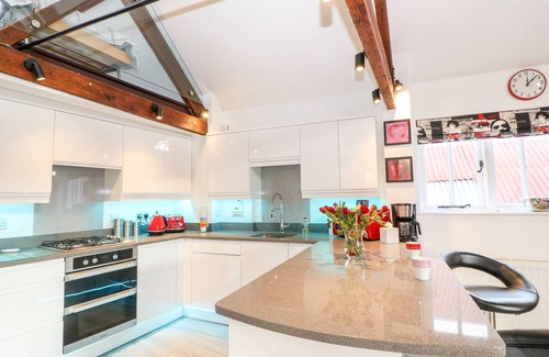 The Brown Street Apartment has three bedrooms, ensuite and an open plan living area with kitchen, dining and sitting area in the Wiltshire city of Salisbury.