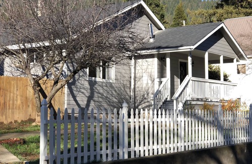 Our home is located in Dunsmuir, CA just steps away from the Sacramento River. There is parking for three cars in front and one small compact car on the side. There is a queen memory foam bed in each of the two front bedrooms, a twin bed off the second bedroom, two twins & a double futon upstairs in the third bedroom. There is a fully stocked kitchen, lots of seating in the living room, a separate dining room, family room and a clawfoot tub with shower enclosure in the bathroom.