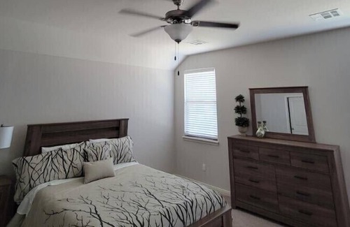 This amazing new home located close to Airport, Major Highways, Outlet Shopping, and much more. This spacious home has enough room to sleep the entire family or would work great for a work trip. This beautiful location offers 3 Bedrooms, 2 bathrooms and an office that can also be used as a fourth sleeping area. The fully stocked kitchen will definitely make you feel at home. Welcome to your second home.. we know you will love it here.