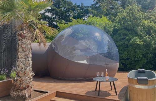 The suite of our ecolodge Expérien'Ciel, luxurious and warm, is located 300m from the sublime wild beach of Saint-Pabu in Pléneuf-Val-André. You will benefit from an exclusive comfort to spend a romantic stay : high quality equipped kitchen, bathroom, terrace with barbecue.