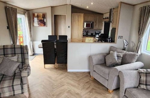 Escape to our breathtaking lodge retreat, perched atop with panoramic views of the picturesque Devonshire countryside and park. Indulge in luxury with a 5-man hot tub, new BBQ, and spacious patio set for al fresco dining. Perfect for families, it sleeps 6 comfortably with modern amenities including an Xbox with over 20 games and a plethora of movies. Enjoy the convenience of a brand new washer/dryer, dishwasher, and fully stocked kitchen. With double opening patio doors and a shower room, it's your home away from home.