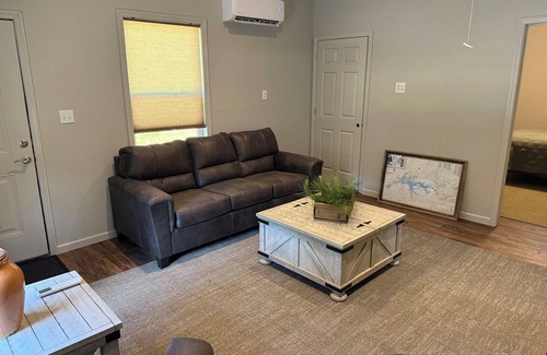This adorable property features 2 queen beds, a cozy living room with a sofa bed, WiFi and full kitchen. Outdoor grilling area with seating. Located adjacent to Little River Marina in Cedar Bluff, Alabama. Enough space for boat parking, power available for charging trolling motors.