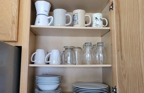 Here at The Perfect Getaway, you can expect to feel right at home as we have everything you may need and more. Enjoy our spacious living area and dining room for 6 (but can reasonably accommodate 8). There is a mini highchair available for a small guest's convenience. The kitchen features brand new counter tops, a stove that includes a skillet top, a cappuccino maker, a juicer, an air fryer, a toaster, and many teas to choose from. Fully equipped with all kitchen utensils - glass and plastic. There are also fruit and veggie garden beds in the backyard that we welcome all our guests to. The garden beds are not fenced in, so please watch the pets. Our first bedroom features a queen bed and a work space that includes a printer, calendar, and a Chromebook for your convenience. The second bedroom is a queen as well. ut is accompanied by a si gle bed also. There is central heating and cooling for your comfort. The master bedroom is a queen and has a pack and play and walker for any small guests needing them. The backyard is fully fenced in and has designated ashtrays. There is a big propane grill. We ask all guests to please pick up after their pets if they use the backyard with the pet bags we provide and to recycle during their stay if possible. Recycling and glass bins will be provided. This is not an obligation. We just love to help make the world a better place.