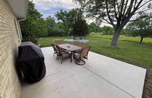 Nestled in Bridgman, this completely remodeled house offers a tranquil escape for guests on 18 acres. With 3 bedrooms including a king bed, queen bed, and 2 bunk beds, everyone will have a cozy spot to rest. Two full baths on a tankless water heater supply endless hot water. Wind down after a day at nearby Weko beach in the large living room with huge sectional and 75" TV or sit around the outdoor firepit and enjoy the stars with a bottle from a local winery or distillery. Our place will help you feel at home while you're exploring Harbor Country.