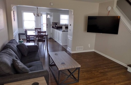 Contemporary and tastefully 100% remodeled townhome in the heart of downtown Plymouth! 5min walk to downtown Plymouth's Kellogg Park! u, brand new furniture, luxury real hardwood flooring, granite kitchen with high-end appliances ample parking, and a stylish interior. 65" 4k TV in living room. LED TVs in bedrooms Onsite washer + dryer in basement • Central air and furnace • Nice park across street • Business Desk • Extremely safe neighborhood • Digital Keys • High Speed 1GB Internet