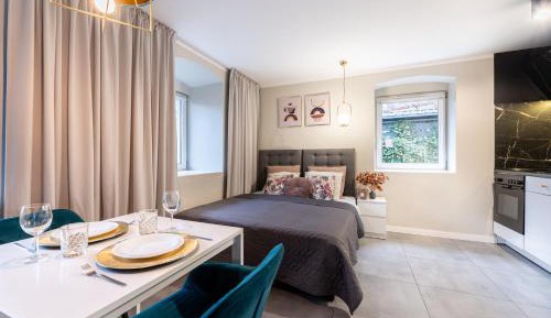 Featuring free Wifi, private parking, and a garden, the recently renovated property 7apartments przy Termach Cieplickich offers accommodations in Jelenia Góra, 10 miles from Wang Church and 10 miles from Dinopark. The apartment, set in a building dating back to 2017, is 11 miles from Szklarska Poreba Bus Station and 11 miles from Death Turn. When staying at the apartment, guests can use private entrance. All units include a seating area, a flat-screen TV with streaming services, a fully equipped kitchen, a dining area, and a private bathroom equipped with slippers, while some rooms feature a terrace or a patio. An oven, a fridge, and stovetop are also available, as well as a kettle. At the apartment complex, every unit is equipped with bed linen and towels. Guests at 7apartments przy Termach Cieplickich will be able to enjoy activities in and around Jelenia Góra, like skiing and hiking. A baby safety gate is also available for guests at the accommodation. Izerska Railway is 11 miles from 7apartments przy Termach Cieplickich, while Western City is 11 miles from the property. Copernicus Wrocław Airport is 66 miles away.