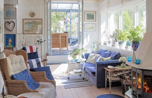 In Fagerfjäll only 2km from the sea, this incredibly airy and cozy cottage is located in a lush oasis with a large lovely terrace in different directions, and close to both shopping, swimming and nature. The forest around the house is rich in both mushrooms and different berries, depending on the season. The cottage is bedridden and privacy protected with cozy terrace, outdoor furniture, outdoor shower, nice greenhouse with furniture and direct entrance and exit to the kitchen via patio door.A small hall with toilet and sink and to the left kitchen with dining area with beautiful windows and views of the terrace.A large and lovely living room divided into three rooms. The first with wood burning stove, armchairs and sofa for cozy evenings. Adjacent is the house's book room with board games to socialize around. Also an exit to the glazed porch with furniture. Open the interior doors on a sunny morning and listen to the birds chirping or when it rains you pick up a book and enjoy the clatter of the roof and the tranquility. TV with sofa and armchairs at an angle is located in the other part of the living room. Here is a place for everyone.Inside the living room are the bedrooms. One room has a double bed (180cm) with patio doors and exit to the patio. The second bedroom has two bunk beds (90 / 90cm) the two extra beds are in the sofa beds in the living rooms. In total you can sleep 8 people in the cottage. Youth gangs can not book this accommodation, but at least one guardian in company must be present during the entire stay.In 2014, Tjörn was ranked as the world's seventh most beautiful wilderness area. The island's range of outdoor activities and attractions is large. Here you will find, among other things, the Nordic Watercolor Museum, Dyrön with Dyröleden, Pilane Cemetery and a number of nice restaurants and shops all over the island.Tjörn and its surroundings are excellent for kayaking, fishing, swimming, climbing and nice trails for both hiking and cycling. The viewpoints take turns, do not forget to bring your camera. Welcome!