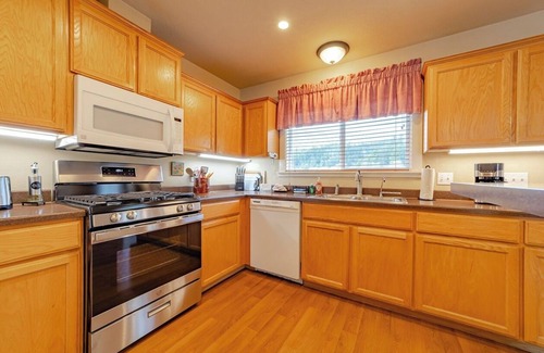 The cabin has 2 Queen bedrooms, 1 Two-Twin bedroom, a Sofa Bed in the Living Room, 1 bathroom, a full kitchen stocked with cooking and eating utensils, living area with DirectTV, DVD. Private deck with seating and gas BBQ.