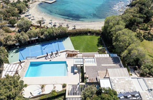 The aesthetics of the villa seamlessly blend stone, wood, and metal materials, nestled amidst lush greenery and carefully planted trees. The resort features two swimming pools, direct beach access, a tennis court, paddle court, and a mini soccer field--each element meticulously curated to strike a perfect balance between luxury and natural beauty. The property is available from the beginning of 2024 for booking to stay, to host special events and occasions.