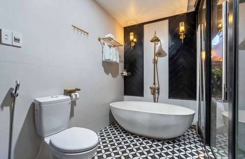 Escape to this charming 1-bedroom cottage in the heart of Hội An, the perfect retreat for your next getaway. The cozy bedroom boasts a plush king-sized bed, while the elegant bathroom features both a bidet and a relaxing bathtub. Step outside to your own private pool and enjoy the serene surroundings.