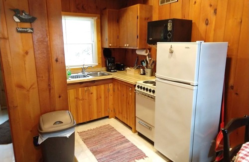 A cozy two bedroom cabin with small kitchen, 3/4 bathroom, and screened porch. Double bed on main level, bunk bed with double and twin beds in loft. Beautiful views of the lake from the loft. Linens are provided, and kitchen is supplied with all cookware needed. Surrounded by stately pine trees, you are just a few steps away from 3000 acre Grindstone Lake. This cabin has that small resort feel to it. Walk or bike the quiet canopied road down to the coffee shop. Bring your boat and fishing tackle and head out to hook some fish for dinner, or catch a big, trophy muskie! Only a fifteen minute drive from the city of Hayward. Up to four kids 16 and under stay free! No WiFi