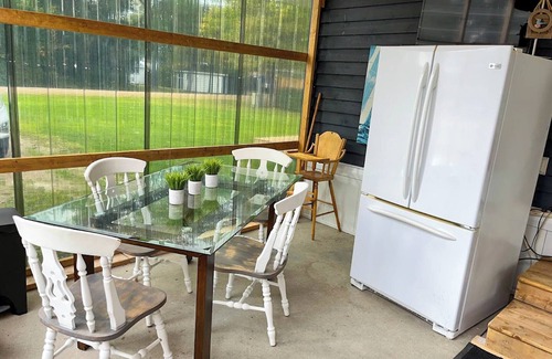 Extras at the cottage include a SmartTV so you can login to your own Netflix/Prime account. Covered outdoor dining. And you can cozy up in front of a Gas Fireplace. Newly installed AC unit