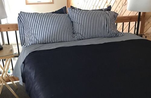 Beautiful View Lodge sits on 5 acres looking over a serene pond. Spacious lawns surround this lodge, so you have plenty of room to play and enjoy the entire private property. It is a great location for snowmobiling and ice fishing. The Lodge has an open floor plan with a living area, dining area and kitchen area all together. There are 2 bedrooms with queen beds and a loft with a queen bed and 2 twin beds and a large couch. There are also 3 additional couches and a queen blow up mattress. 8-10 people can sleep comfortably. There are two big screen TVs. There is one bathroom with a walk in shower. We have an indoor sports court with all the amenities to play basketball, volleyball, pickleball, and bean bags. There is a beautiful pond and scenery to view. Enjoy time with your family and friends playing games, sitting by the firepit, watching the sunsets, and creating wonderful memories together.
