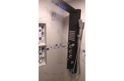 Kick back and relax in this calm, stylish space. Modern bathroom with jets in the shower.