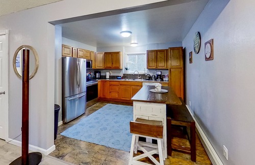 Inside The Grizzly Duplex, get comfortable amongst plush furnishings and updated amenities. The living room's sofa and Smart TV are ideal for streaming sessions, but when you aren't feeling a movie, engage in some playful competition over a game of cards. When you get hungry, the full kitchen offers stainless steel appliances and ample meal prep space.