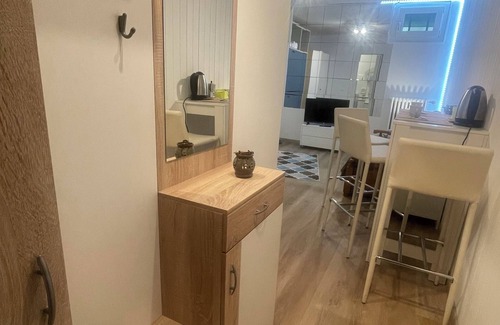 The apartment is part of a condominium, located on the -1 floor relative to the street and accessible by elevator. It consists of a room with a sofa bed, two fold-out bunk beds, a kitchenette, and a bathroom with a shower. It is ideal as a base for mountain excursions and can accommodate a couple or, if necessary, be configured to host up to 4 people. During the pool's opening season (Christmas period and summer), the studio apartment becomes a splendid pied-à-terre for enjoying wonderful days by the pool's solarium.