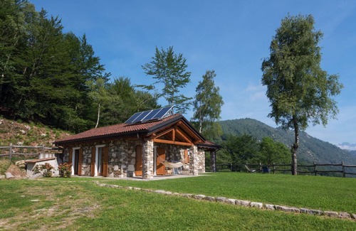 The "Casetta del Rio" is a unique oasis in the middle of nature, a real paradise for nature lovers, couples and families looking for rest and relaxation. The location is absolutely quiet, idyllic and sunny all day in the middle of the forest. The small torrent next to the house is a real adventure playground for young and old. Hiking enthusiasts can explore here at the foot of the Mottarone the many marked trails of the well-developed hiking area. Passing the house, a beautiful hiking trail leads to the Mottarone and the surrounding mountains. The many vantage points always surprise with changing views of the exceptionally beautiful landscape and the lake. The area is also ideal for mountain bike tours, horseback riding and numerous sightseeing trips to Lake Maggiore and Milan. About 1 km away there is a restaurant, in about 3 km the small town of Levo and 3 supermarkets and in about 7 to 9 km away you reach the beautiful golf course of Stresa, the beautiful lakeside promenade of Stresa with inviting restaurants, cafes , Bars and shops, the public beach and the boat dock. The tastefully, modern furnished stone house "Casetta del Rio" has a living space of approx. 70 m², 2 covered terraces of approx. 30 m², a garden of approx. 600 m² and a slope plot of approx. 67. 000 m². In the garden you will find u. a. a hammock, a tree house and a barbecue. The absolute highlight is the huge pond with a size of 60 m x 25 m. Extensive bathing days is thus nothing in the way. The 3-bedroom house is built after sustainable ecological measures. Electricity is generated with the help of solar energy. There is also a power generator that guarantees a complete power supply. Enjoy from the garden or the terrace the panoramic view of the lake, the mountains and the surrounding nature, while your children play safely on the fenced large grounds with large lawn and tree house! If you still feel the longing for the rest of the world, you have free wireless Internet access to navigate the Internet. As mentioned above, the stone house is in a secluded location in the middle of the forest. The journey from Levo or the main road takes about 1.5 km long unpaved road through the forest. Lowered cars will have their difficulties here. If your car is not suitable for the way, then the landlord will be happy to provide for the entrance of Levo to the house his Subaru for an additional charge of € 20 per night. You can book the car either in advance or spontaneously on the spot when being instructed in the house. You can park your car inside the enclosed property. Finally, it can be said that the fun, bathing and relaxation factor is very important here, which a "normal holiday home" can not offer! House layout: Entrance lounge / dining room with pull-out sofa bed for one person, satellite TV, fireplace, lake and mountain views and exit to the 1st. Terrace and the adjoining garden Well equipped kitchenette with oven Storeroom Bedroom with double bed (through mattress: 1.80 x 1.90 m) and exit to the 2nd Terrace and the adjacent garden 2. Bedroom with single bed (mattress size 0.80 m x 1.90 m) and bunk bed (mattress size 0.80 m x 1.90 m). There are enough games available. Also from this room you have exit to the 2. Terrace and adjoining garden Friendly bathroom with bathtub (shower facility), bidet, window and lake view Two each about 30 m² large covered terraces with panoramic views of the lake, the mountains and the surrounding nature and exit to the garden Ca. 600 m² large ground floor garden with barbecue, hammock and tree house. Enjoy the fantastic view of the lake, the nature and the mountains. Magnificent pond with a fabulous length of 60 m x 25 m approx. 67,000 m² hillside property with lake and mountain views